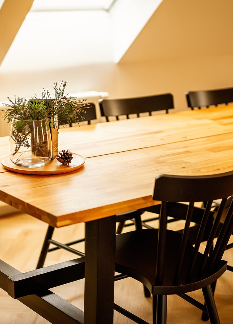 Tak po prostu — wszystko, co ważne, jest tu blisko. Rano kawa z widokiem na wodę. Wieczorem ogień i cisza. Wnętrza są ciepłe, z cegłą, drewnem, trochę surowe, ale przytulne. A za oknem… nic, co by przeszkadzało.